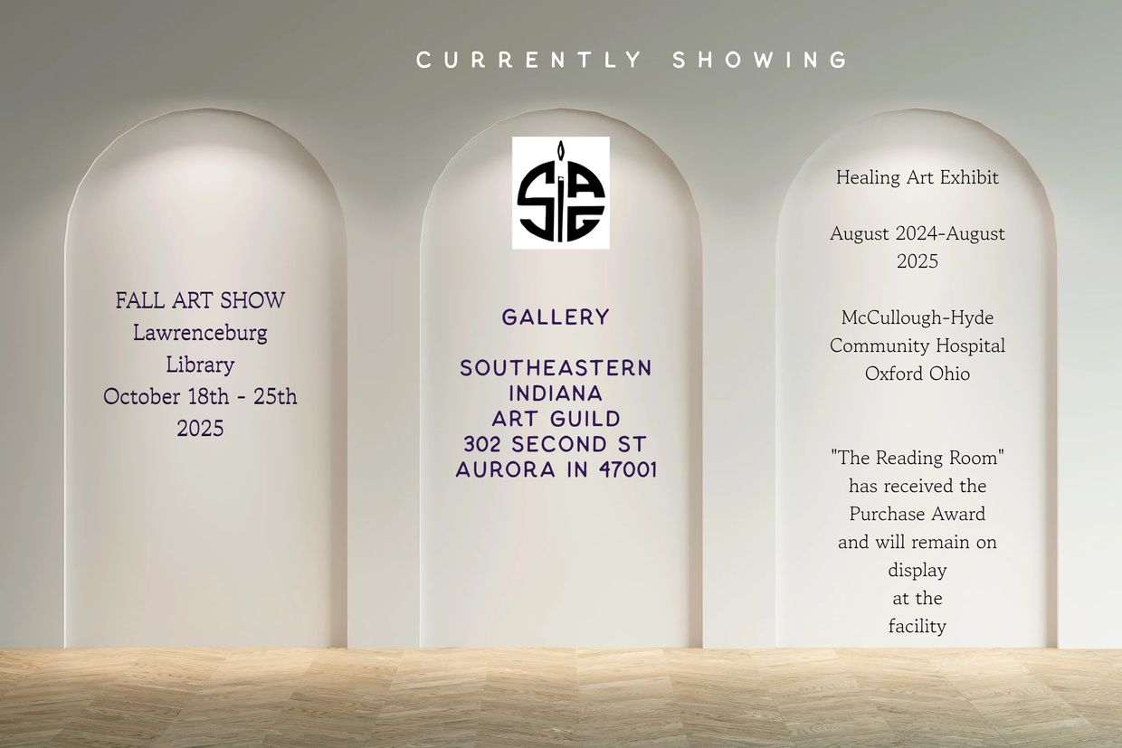 I have been an active and proud Member of the Southeastern Indiana Art Guild (SIAG) in Aurora Indiana since 2010. Currently serving as President of this all-volunteer, non-profit organization.